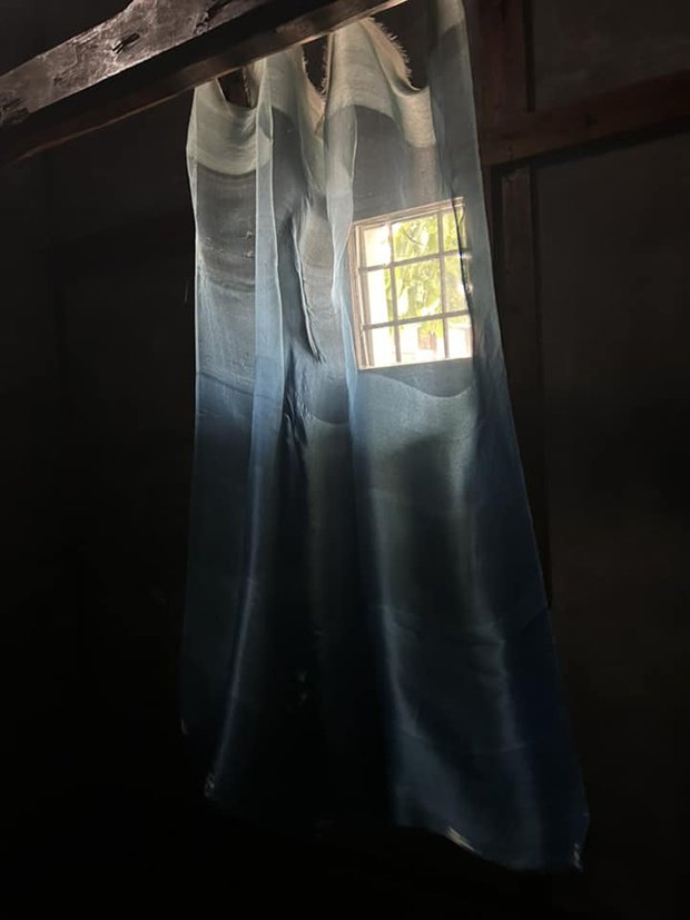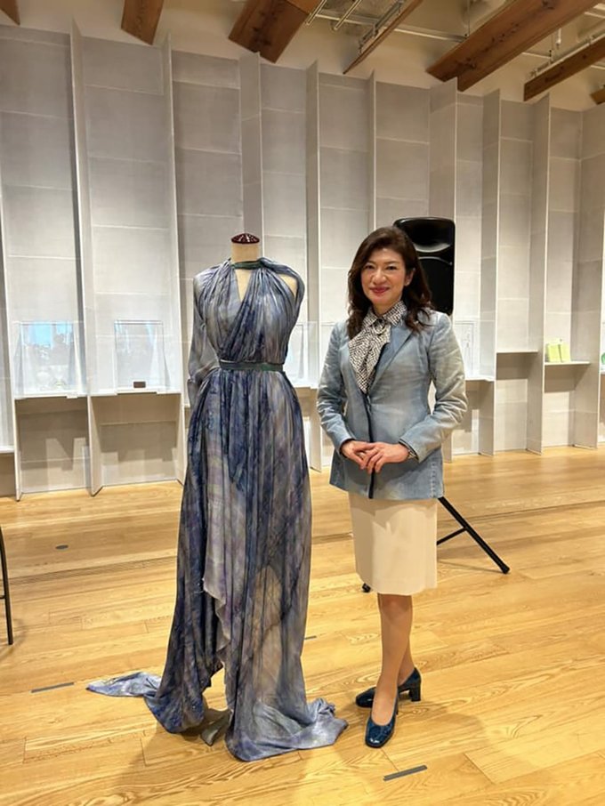 現在、富山でただ1軒残る絹織物の会社となった松井機業がしけ絹を生産していますが、6代目社長の松井紀子さんは、愛する自社織物をファッション製品にも使ってほしいと願い続けていました。しかし、大手アパレル企業はどこも、「繊維が弱すぎて服には使えない」と断ってきます。あきらめかけていた矢先、高松さんに「発見された」のです。高松さんは言います。「たしかに量産される服にはこの素材は向かない。ただ、特別な一着を作るオートクチュールであれば、難しい素材を扱うテクニックが際立ち、稀少性と芸術性が高くなるのでラグジュアリー製品として高く売れる」と。かくして高松さんは、量産品では弱点となるしけ絹の特性を長所として生かしたオートクチュールドレスを製作、会場にはその一点が展示されました。