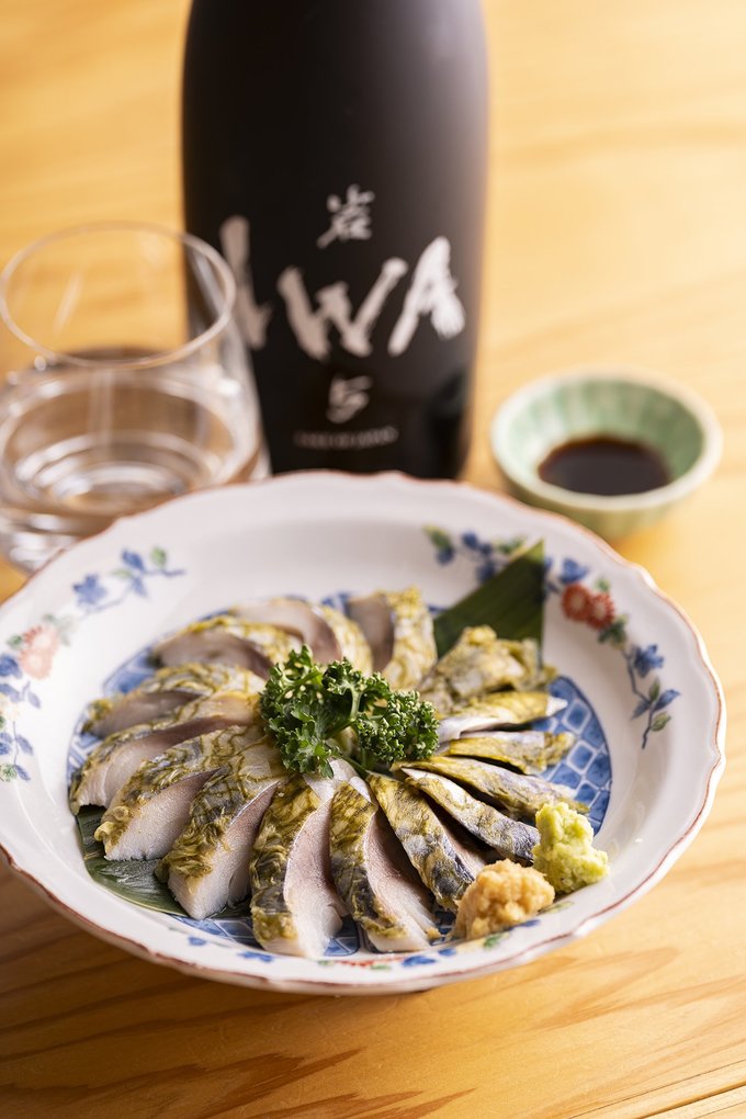 店のメニューの中には、福井のエッセンスが加わったものも用意している。郷土料理でなじみ深いサバを使った「サバの昆布〆刺し」は、うまみたっぷり。「アフタヌーンのんべぇセット」には伝統料理「へしこ」を盛り込んだ。どちらもついついお酒が進むおいしさで、会話も弾みそうだ。