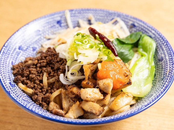 こちらの店では、ラーメンやライスのトッピングとして山うにを用意している。ピリッとした辛味とユズの爽やかな香りが特徴で、塩ラーメンのこくのある味わいを引き立てる。「山うに汁なし担々麺」は、濃厚なごまだれに山うにのフレッシュな風味がアクセントに。一度食べたら癖になりそうな味わいだ。