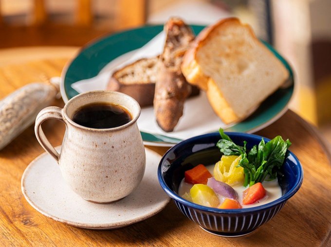 ユイノテではオリジナルブレンド4種類とシングルオリジンがあり、丁寧にハンドドリップで入れている。「ベーカリーハル」(石川県金沢市)のパンと一緒に楽しむのがおすすめ。小麦の豊かな風味を、コーヒーの深い味わいがさらに引き立てる。
