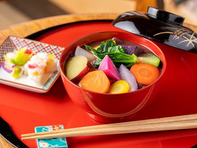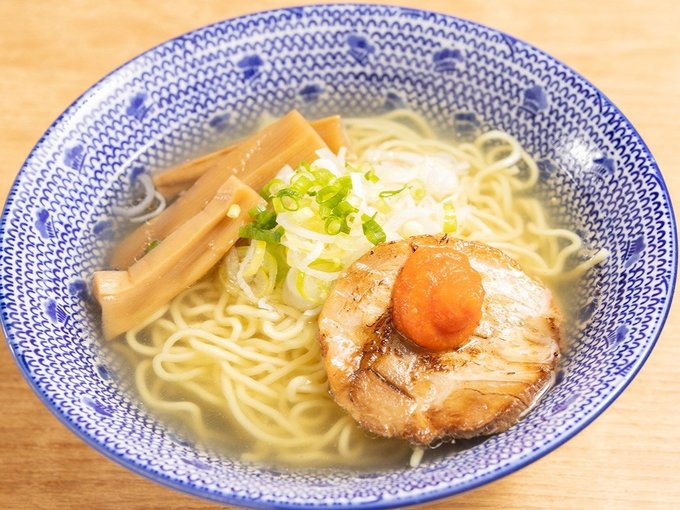 透き通った塩ラーメンのスープに、鮮やかな朱色の薬味が映える。福井県鯖江市の東部、河和田地区に伝わる薬味「山うに」。ユズや鷹の爪、赤なんば(万願寺唐辛子)などを擦り混ぜて作られている。海のものは入っておらず、色がウニに似ているのが名前の由来とされる。