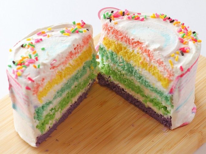 「キチbox レインボー」(イートイン1,320円)。ナイフを入れると中からカラフルなスポンジが現れる。特に子どもに人気の一品
