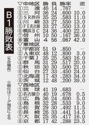 茨城と23位の信州、富山の3チームの勝率が並んだ場合も、富山が23位以下となる。