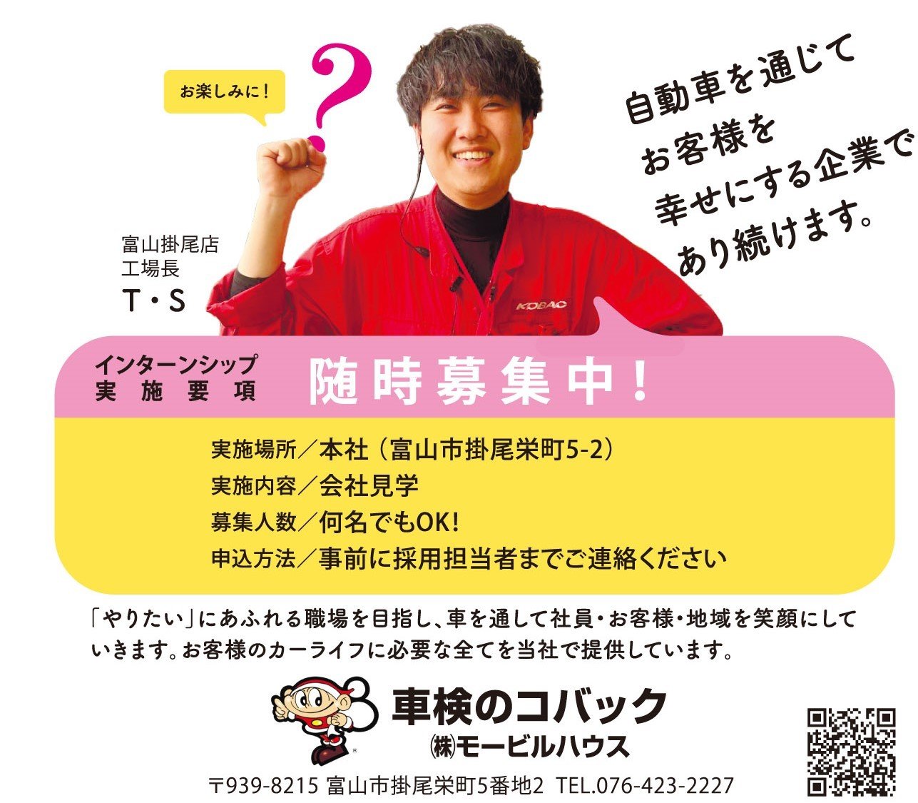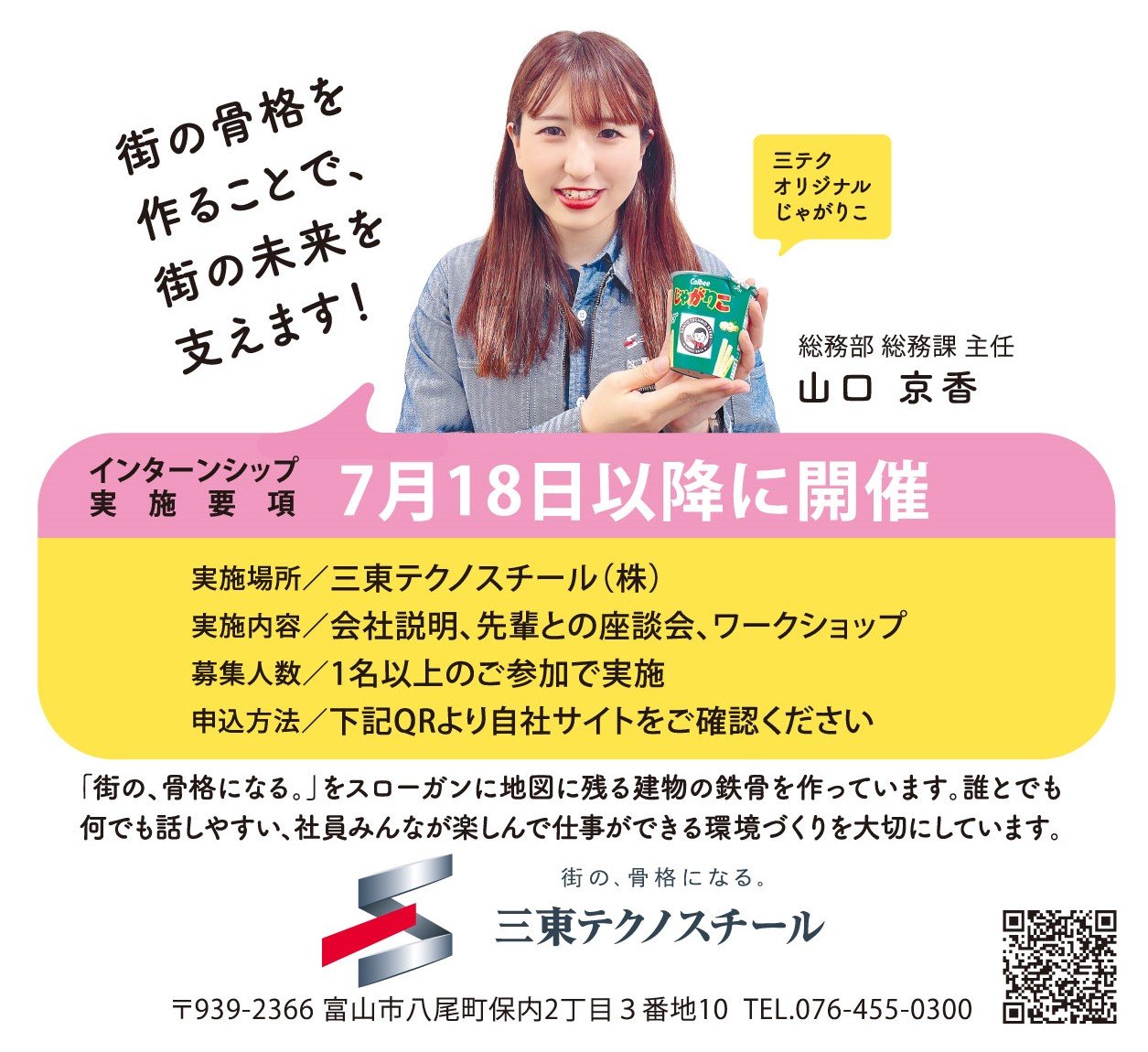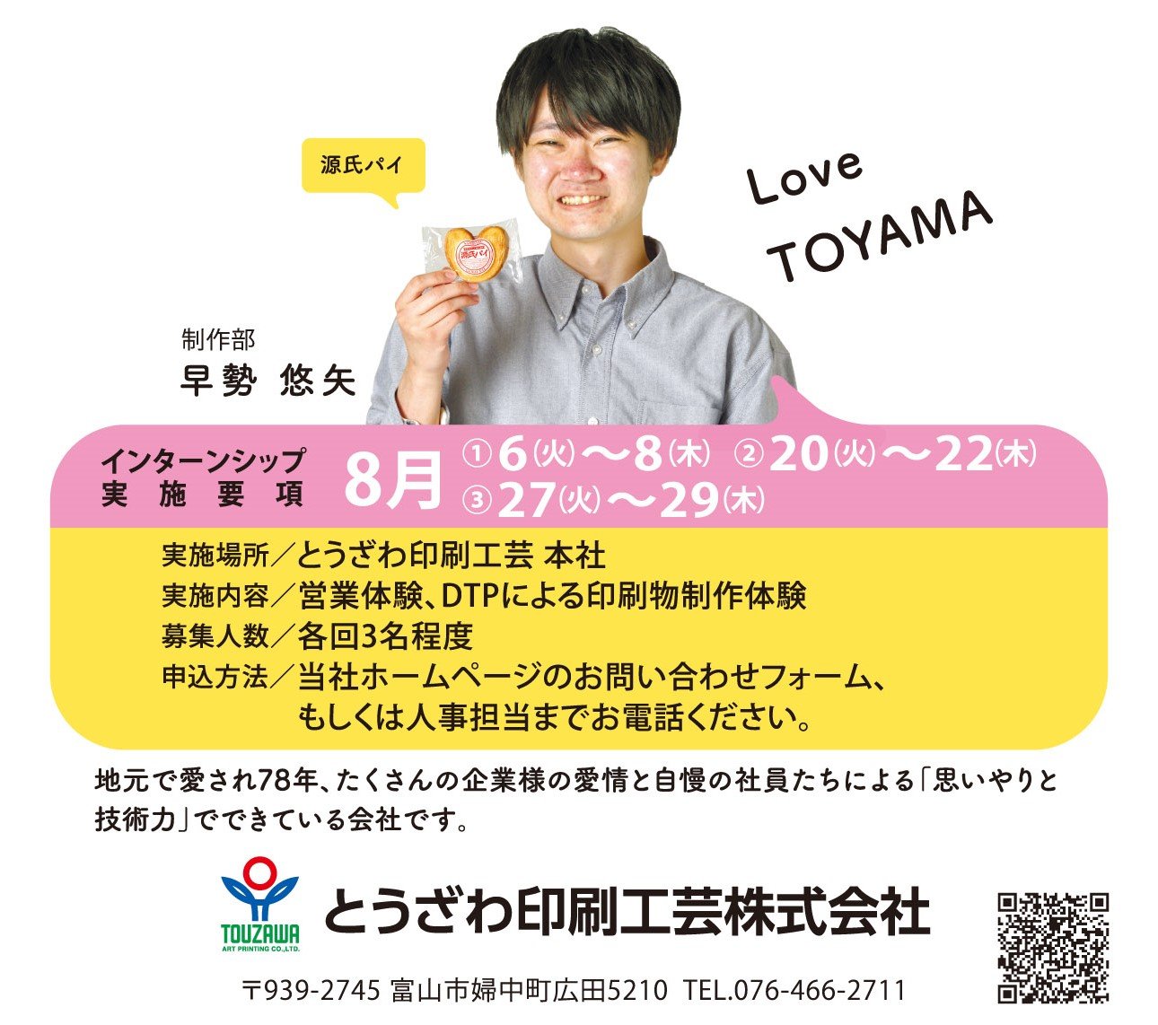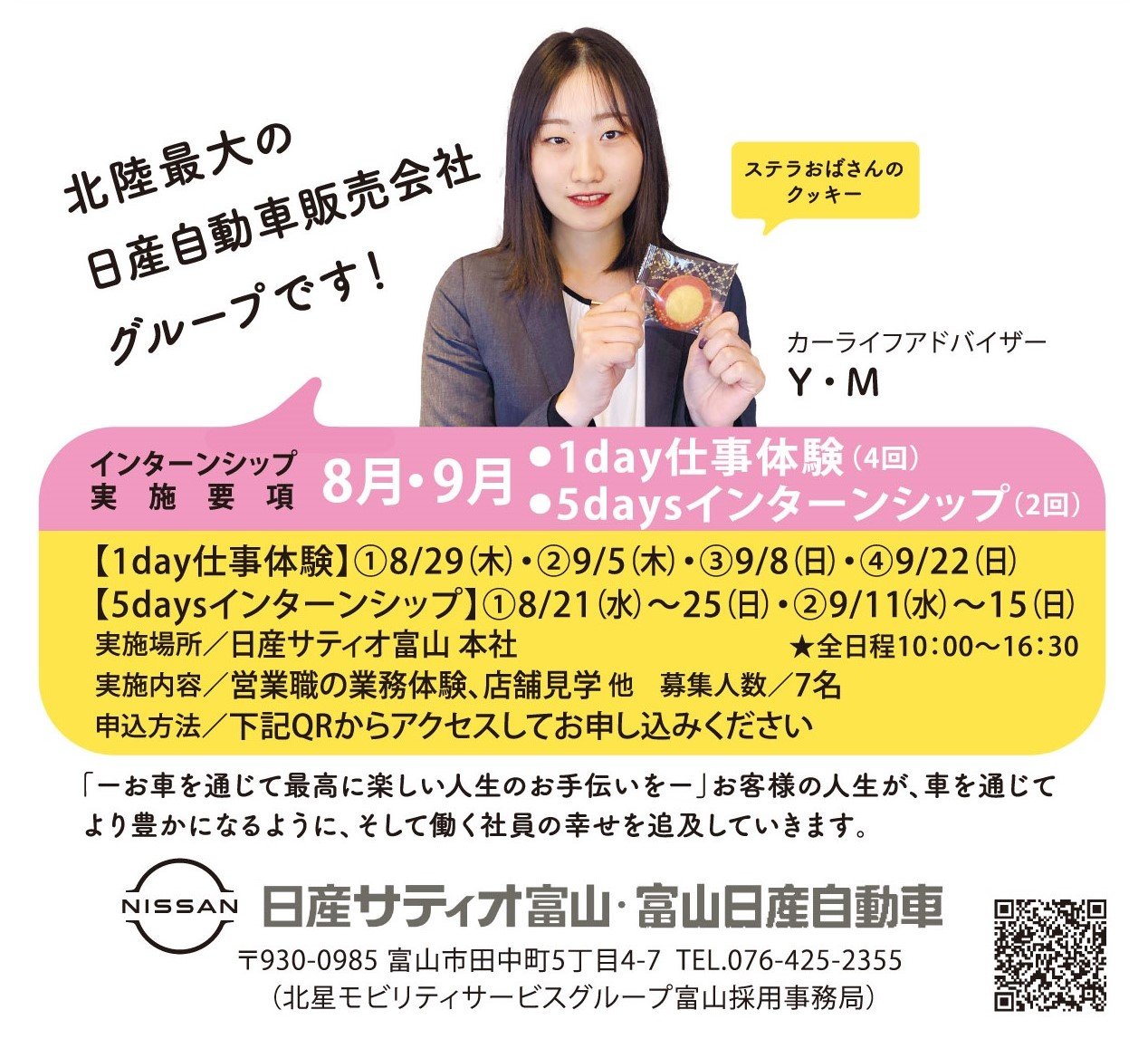 お菓子を食べながら、先輩社員たちと気軽にコミュニケーション!大学3年生、短大・専門1年生のみなさんを応援する就活イベントです。名刺交換会や企業交流会、顔タイプ診断(要予約)など、企業研究の第一歩に役立つ内容です。ここでご紹介する富山の元気な企業たちが、あなたとの出会いを心待ちにしています!!