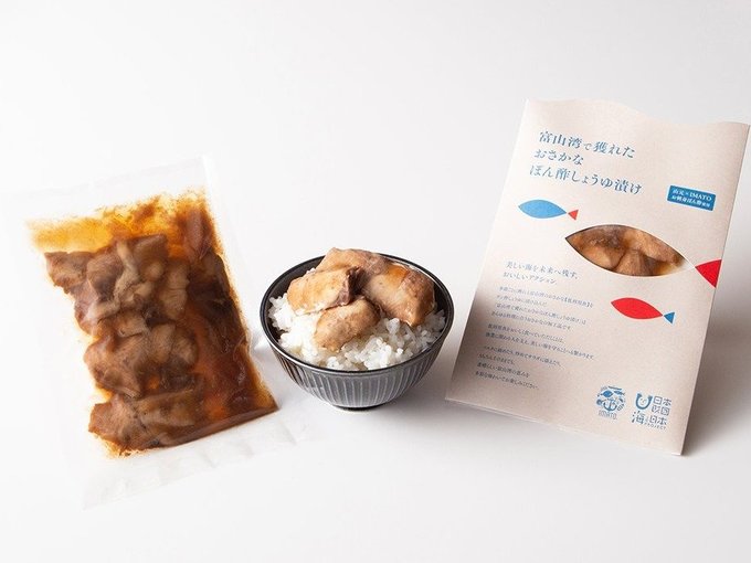 商品の第1弾として、近年、富山湾で大量に水揚げされている白身魚「シイラ」を活用。劣化が早いシイラの幼魚を刺し身でも食べられるほど新鮮なうちに加工し、高岡市の「山元醸造」と共同開発した「お刺身ぽん酢」を使って煮込んだ。臭みがなくさっぱりとした味わいで、スダチやユズを使用したポン酢の爽やかな風味が食欲をそそる。冷凍商品のため長期保存でき、解凍するだけで食べられる手軽さも魅力だ。