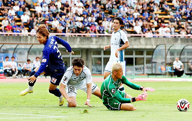 富山は前半から連動した攻撃を仕掛けたが、40分にPKで先制を許した。後半6分にはコーナーキックの折り返しを、ボレーで流し込まれて失点。45分に途中交代で入ったFW碓井(上市町出身)の2戦連続弾で追い上げるも、及ばなかった。会場には7701人の観客が訪れ、声援を送った。