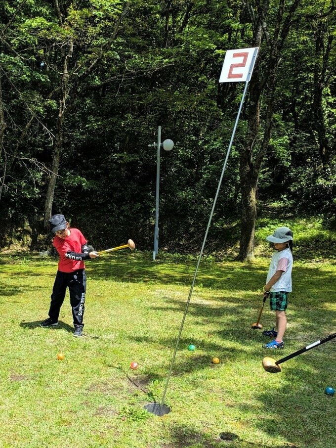 翌朝は6時に起きてバーベキューの残りを食べて、片付けをしてからパークゴルフを楽しみました。