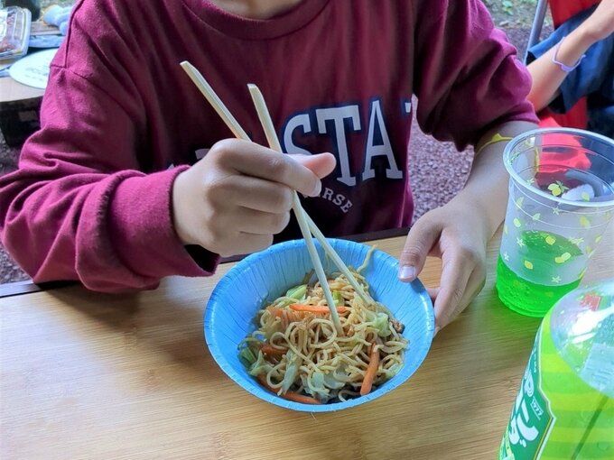 ご飯の時間が予定より遅れてしまったけれど、外で食べるご飯はおいしい!