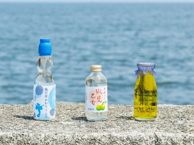 「おわら風の盆」にちなんだブルーのラベルは、富山市内のデザイナーが手掛けた。ラムネのシュワッとした喉越しが心地よく、ビー玉が瓶の中でカラコロと転がる音も清涼感たっぷり。市内の温浴施設や宿泊施設の自動販売機で扱うほか、オンラインストアでも販売している。
