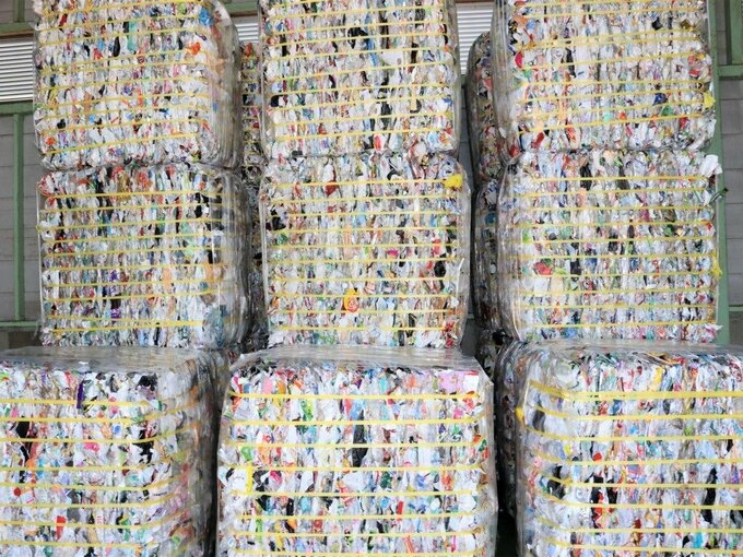 集まった資源ごみは施設でまとめられた後、業者に引き渡され、プラスチックやペットボトルなどに再生されるほか、ネクタイや作業着など全く違うジャンルの品物にも生まれ変わります。