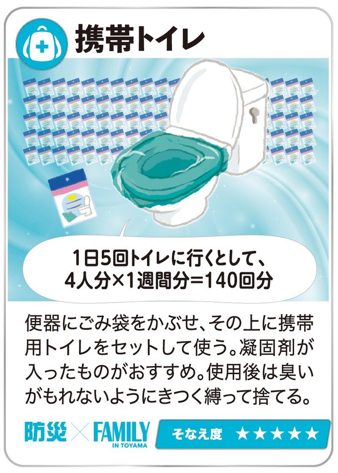 暮らしの備えはコレ!避難生活に備えよう 2024年6月1日 09:00 ライフラインが止まった自宅は不便だらけです。少しでも快適に過ごすため、食品以外にも備えておきたい物がたくさんあります。 食の備蓄はコレ!避難生活に備えよう 大震災後は、物流が混乱し、スーパーに行っても食料品がない!という事態が考えられます。最低でも3日分、できれば1週間分... 住宅設備はコレ!避難生活に備えよう 自宅を「安全・安心」な場所にするためには、耐震性能をまずは確認。在宅避難生活を快適にしてくれる優れた設備もあります。... 生活の工夫も大事!避難生活に備えよう 災害時は限られた物資で命をつないでいかなければなりません。事前の備えや少しの知識が、長引く避難生活の助けとなります。... 「『自分にとって』必要なもの蓄えよう」ママ防災士・鈴木佑実さんに聞く 1月に発生した能登半島地震から、半年が過ぎようとしています。地震後、皆さんの家庭では災害対策にどのような変化がありまし... 防災士さんに聞く!避難所へ行く判断基準は? 高齢の家族どうやって避難? 1月の能登半島地震を受け、翌月に発行したコノコトプラス10号の読者アンケートで地震対策についての疑問を集めたところ、約... いざというときのため、家族でどう備えれば…【防災×FAMILY】STEP2(2024年6月30日付 北日本新聞掲載) 1月1日に発生した能登半島地震から、半年が過ぎようとしています。皆さんの家庭では、今どのような地震対策をしていますか?... この機能は会員限定です。 お気に入りの記事を保存し、マイページで読むことができます。 ログイン 会員登録はこちら