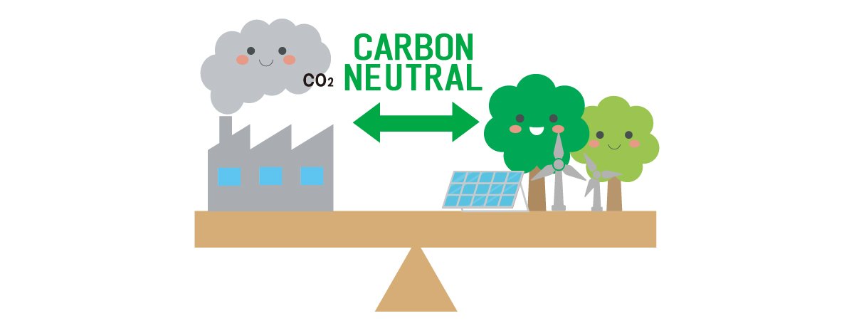 日本語で「炭素中立」という意味で、温室効果ガスの「排出量」と、森林の光合成や新しい技術によって「吸収・除去した量」を同じにし、排出量を実質ゼロにすることです。