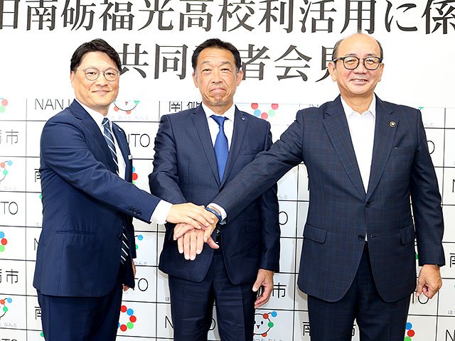 会見には青池理事長と田中幹夫南砺市長、田畑さんが出席。田中市長は「白球を追う子どもたちの声が聞こえると、地元の人たちも元気になる。福光からぜひ甲子園を目指してほしい」と激励した。青池理事長は「全国で勝てるチーム、優勝を目指せるチームをつくりたい」と語った。