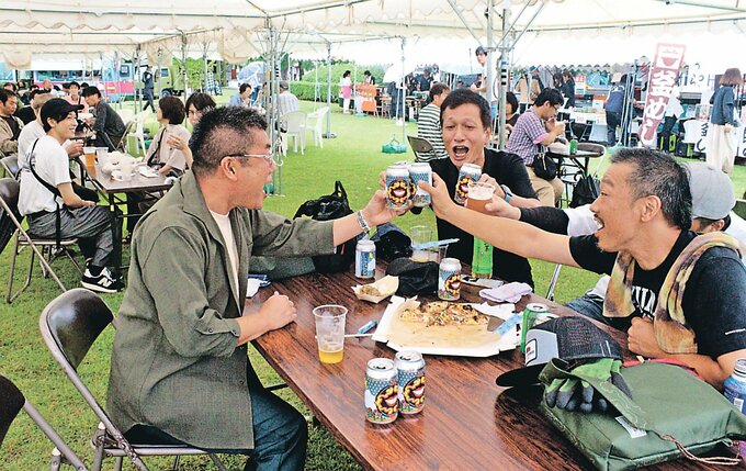 グルメイベント「KANPAI! UOZU! ビアフェス」が22日、富山県の魚津市役所前公園で開かれた。魚津初となったクラフトビールがお披露目されたほか、市内の飲食店のブースが集まり、来場者でにぎわった。