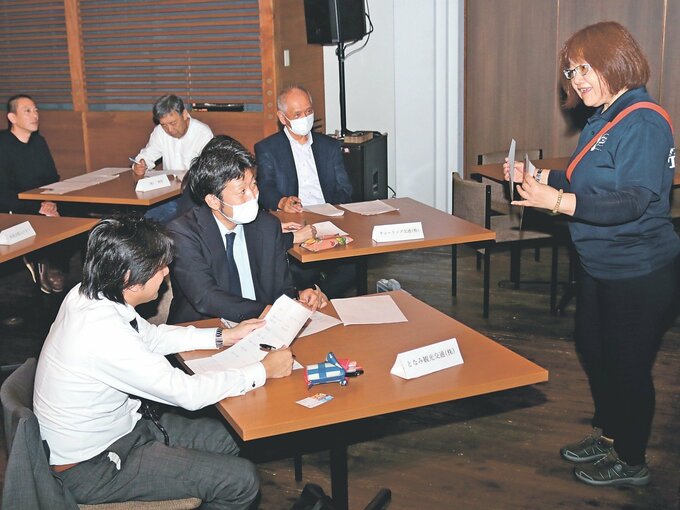 台湾からの観光客を受け入れる体制を強化しようと、富山県の砺波市観光協会は4日、砺波市三郎丸の若鶴酒造「大正蔵」で、市内の事業所を対象とした研修会を初めて開いた。台湾出身で、同協会観光推進係の平井くるみさんが講師を務め、参加者は台湾の公用語について学んだ。