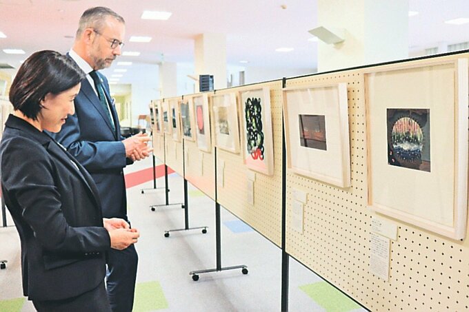 アイルランド・日本交流美術展「『怪談』ラフカディオ・ハーンとの邂逅(かいこう)」が9日、富山大五福キャンパスの中央図書館で始まった。明治の文豪ラフカディオ・ハーン(小泉八雲)の著書「怪談」を視覚的に表現した作品を展示している。11月5日まで。