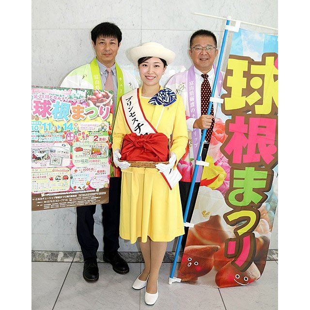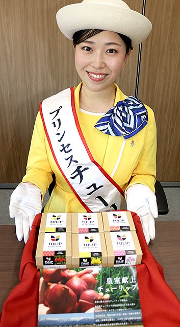 プリンセスチューリップの佐藤玲羅さんは「プリンセスの衣装は人気品種『黄小町』をデザイン化している。皆さんに楽しんでほしい」と話した。北日本新聞社後援。