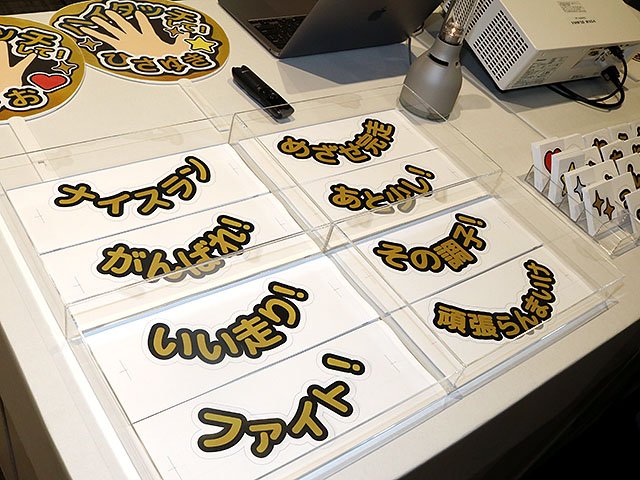 12日は親子連れらがパリ五輪に出場した県関係8選手の手形や、「がんばれ!」「ハイタッチして!」などの応援メッセージを貼り付けて仕上げた。うちわのデザインを担った富山大芸術文化学部の学生が協力した。