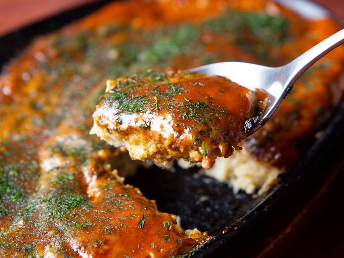 すりおろしたながいもをふんわり焼いた、開店当初からの定番メニュー。ソースと青のりがかかり、まるでお好み焼きのよう