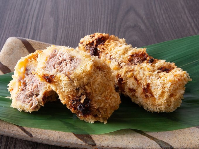 「シシメンチスティック」に使うミンチ肉はイノシシ100%。細かく刻んだ玉ネギやキャベツを合わせ、メンチカツとしては珍しいスティック状にした。「普通のメンチカツより肉々しいですよ」と代表の河野京一さんは胸を張る。「ジビエに接する機会のなかった人の入り口になるよう、さまざまな商品を提供したい」と話し、「イノシシのトマト煮」や「イノシシのボロネーゼ」も用意する。