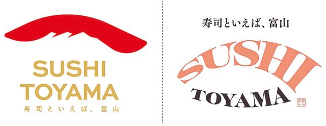 県は25日、浸透を目指す「寿司(すし)といえば、富山」のブランドロゴマークとして二つの候補を発表した。26日から県民投票をウェブなどで受け付け、デザインを決める。