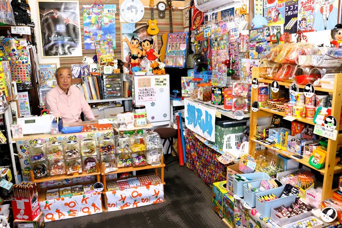 新金屋公園隣の自宅車庫を改装し、2022年に営業を始めた。昭和をコンセプトに当時の映画のポスターや商品看板を飾る。公園で気軽に遊べるようにと、竹馬やバドミントンなどの道具を貸し出している。