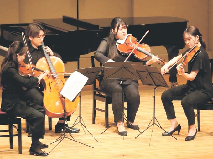 コンサートでは弦楽四重奏や三重奏、バイオリンとピアノの演奏が繰り広げられ、会場には息の合った美しいハーモニーが響いた。