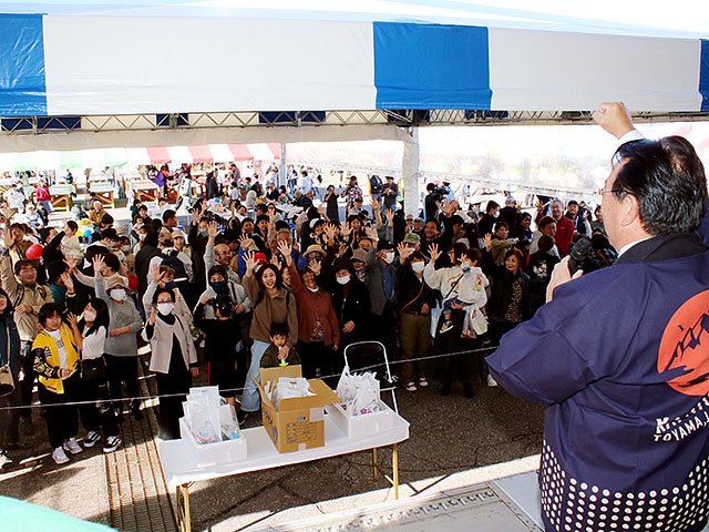 姉妹都市の千葉県九十九里町の浅岡厚町長らも訪れ、同町特産のハマグリがもらえる町長とのじゃんけん大会もあった。