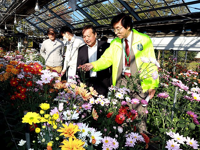 同園で栽培するスプレーギクは年2回、審査を行い新品種を選んでいる。全国的に人気が高く、これまで79品種を開発した。南砺ブランド商品として、全国への販売向けに常時26品種をそろえ、新品種が決定すると既存の品種と入れ替えている。