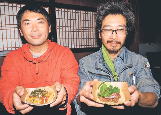 タコスは薄い生地にさまざまな具材を挟んで味わうメキシコ料理。木田さんは大のメキシコ料理好きで、昨年、利賀地域でソバを栽培している農事組合法人「茶屋ファーム」(吉田信一郎代表理事)がそば粉を販売しているのを知り、このそば粉をタコスの生地にできないかと考えた。