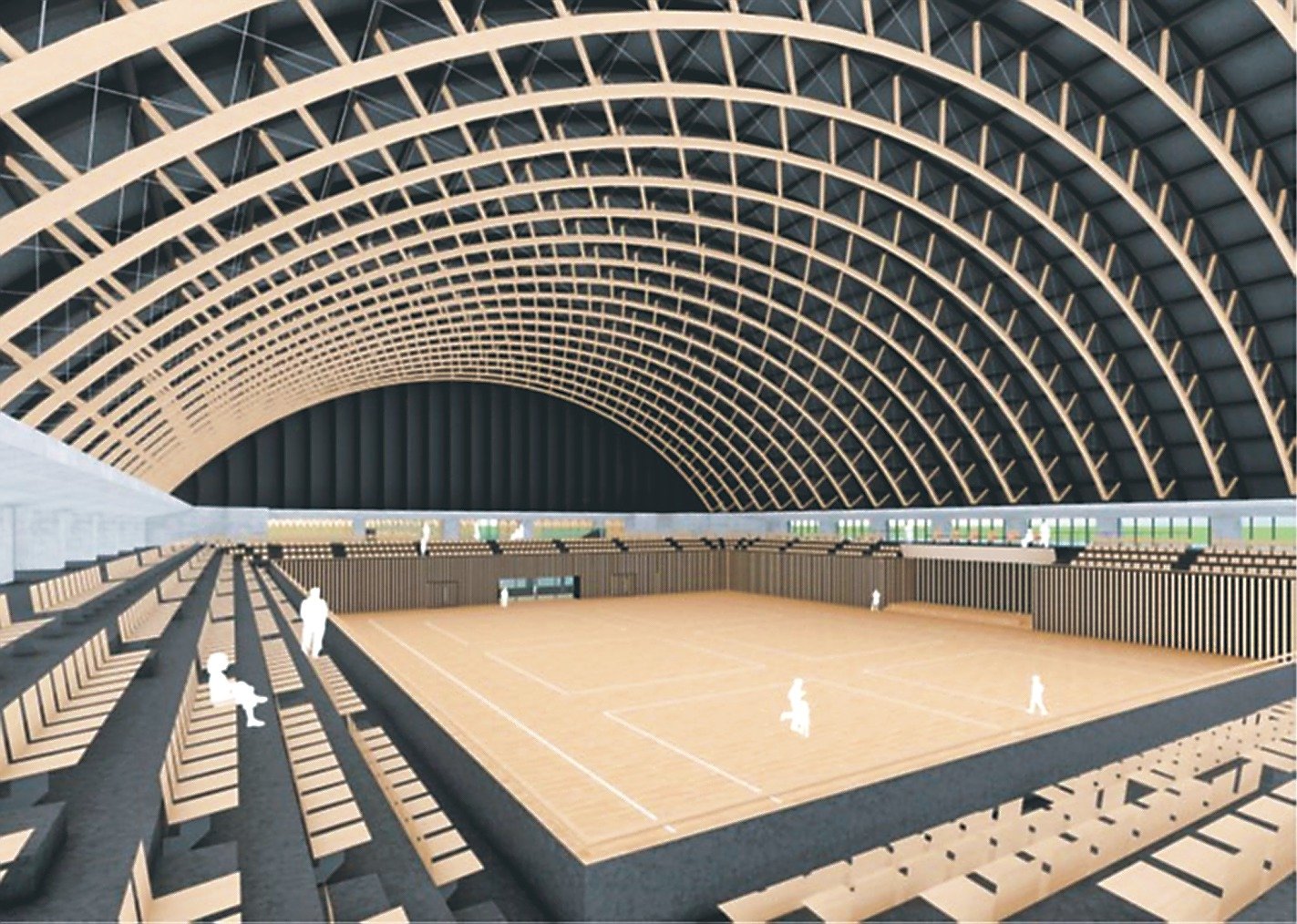 地下1階、地上1階の2階建てで、延べ床面積は約1万1200平方メートル。主道場は大規模な武道大会に加え、卓球やシッティングバレーボール、バドミントンなどでも使えるようにする。観客席には、周辺の広場のどこからでもアクセスできる。屋根はドーム状にし、隣接する屋内グラウンドと調和させる。