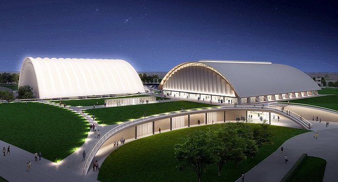 富山県は19日、県総合運動公園(富山市南中田)に新たに整備する県武道館の基本設計の概要や完成予想図を公表した。ドーム状で約1500席の客席を備えた主道場を設ける。地下には武道場を造り、屋上部分は緑地化して芝生が広がる周辺になじむデザインとする。2025年度に着工し、27年度中の開館を目指す。整備費は約88億3千万円を見込む。