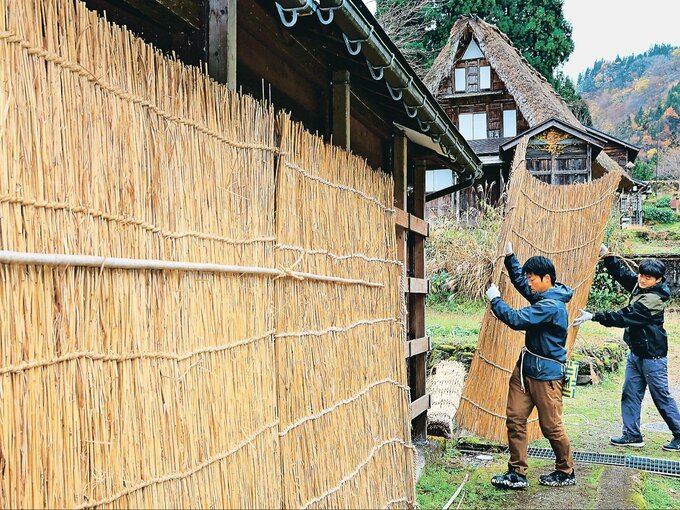 残りは天候を見ながら1週間ほどかけて設置する。中島事務局長は「冬準備する集落の様子を観光客に見てもらいたい」と話した。相倉では今季、初雪はまだ降っていない。