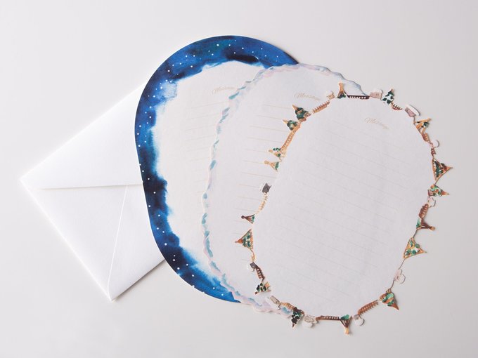 「ゆきツリーのレターセット」。「みくりが池スター」と「ゆきツリーのレターセット」のセットを、12/28までの期間限定で販売する(1,716円)。2品は、富山のギフト商品を扱うオンラインショップ「GIFTPPY」と古屋さんがコラボして生まれた
