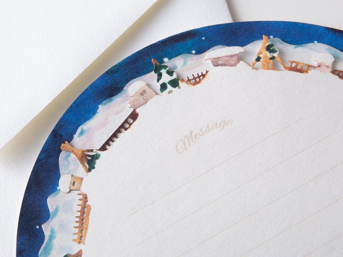 富山の冬景色と一緒に大切な人への思いを届けられるギフト商品として、クリスマスシーズン限定で販売する。同じく期間限定商品として古屋さんが制作した「ゆきツリーのレターセット」は、絵柄の異なる3枚の便せんを重ね合わせると、木々に雪吊りを施した北陸ならではの風景が浮かび上がる。水彩の優しいタッチと、絵本のような世界観に引き込まれる。古屋さんは「紙雑貨を通して、富山の風景やストーリーを伝えていきたいです」と話す。