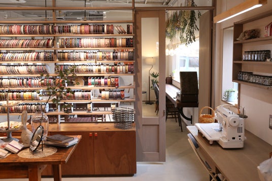 工場の隣のショップ&カフェである「RIBBON'S CAFE」にて、お買い物やワークショップ、カフェもお楽しみいただけます。