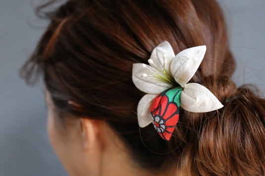 驚くのは、針と糸を一切使わずに作られていること。リボンの組み合わせも調和が取れた作品。