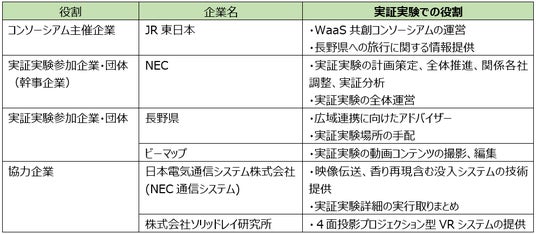 〇東日本旅客鉄道株式会社(代表取締役社長:喜㔟 陽一、以下「JR東日本」)、日本電気株式会社(取締役 代表執行役社長:森田 隆之、以下「NEC」)、長野県(県知事:阿部 守一)、株式会社ビーマップ(代表取締役社長:杉野 文則、以下「ビーマップ」)は、信州首都圏総合活動拠点(以下、「銀座NAGANO」*1)において、現地で感じられる感覚を遠隔地で体感できる新しいバーチャル技術(以下、「没入システム」)による遠隔観光体験が、UX*2と行動変容にどう影響するかを検証する実証実験(以下、「本実証」)を行います。