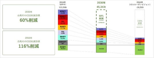 「白馬村ゼロカーボンロードマップ」にて、2030年までに2016年度比でCO2排出量60%削減の目標を定めました。