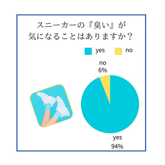 今回のアンケートにより、「臭い」は気になるが解消できないというお悩みを持つ方が多い傾向がありました。また、季節問わずスニーカーを履く頻度が多いという傾向もみられました。