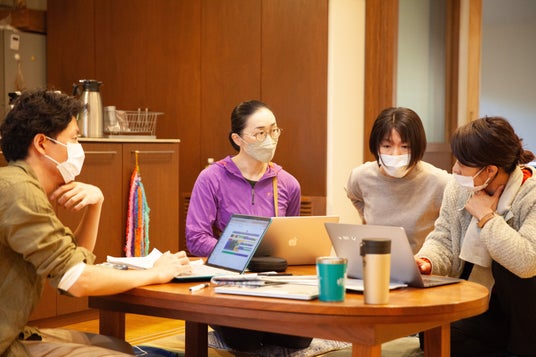 診療所と大きな台所があるところ ほっちのロッヂ内観 打ち合わせ風景 撮影者:田淵三菜(2024年)