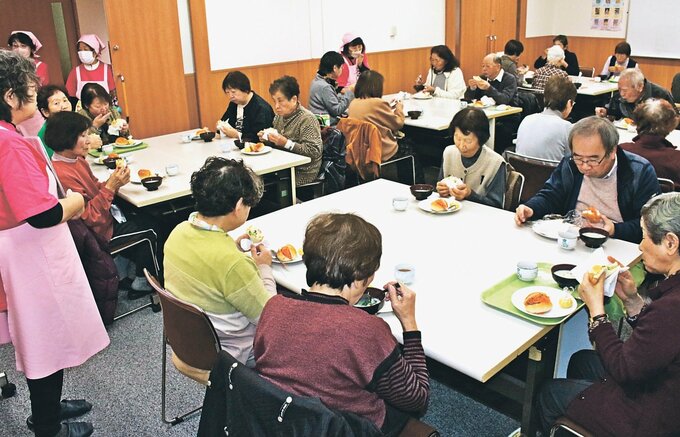 富山県の射水市食生活改善推進協議会大島支部は6日、大島コミュニティセンターで、一人暮らしの高齢者や高齢夫婦を対象に「シニアふれあい食堂」を開いた。食の大切さを学ぶ機会を提供するとともに、孤食を解消したり社会参加を促したりするのが狙い。約30人が講義を受けた後、一緒に昼食を取って交流を深めた。