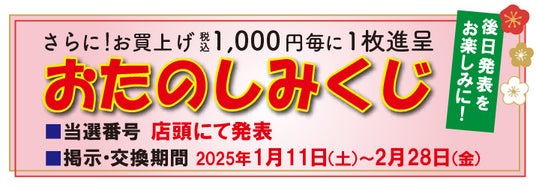 「歳の大市」期間中にお買上げ1,000円(税込)ごとに1枚「おたのしみくじ」を進呈します。