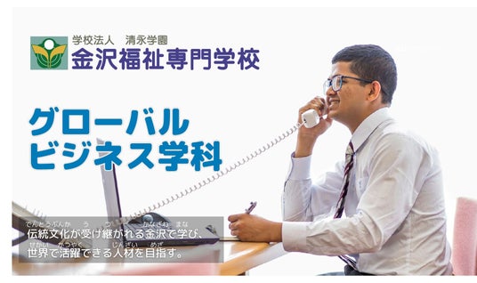 グローバルビジネス学科では、数々の伝統文化(伝統工芸・伝統芸能・お祭り)や加賀温泉、和倉温泉をはじめとした日本有数の旅館がある石川県という立地を生かし、旅館ホテル業界、観光業界、飲食業界等の企業と提携し、2年間で人間力あるビジネスパーソンを育てることを目的として設立する。
