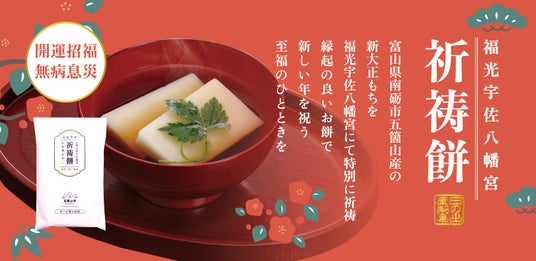 創業100年を迎えた老舗米菓メーカー日の出屋製菓産業株式会社(本社:富山県南砺市、代表取締役社長:川合 洋平)は、富山県南砺市、 公益財団法人五箇山農業公社と共同で、南砺市五箇山地区での有機米栽培の実証試験・販売に取り組んでいる「五箇山米プロジェクト」を進めています。プロジェクト3年目となる今年は「新大正糯」を収穫し、福光宇佐八幡宮にご祈祷していただきました。新年の特別なお餅として販売いたします。