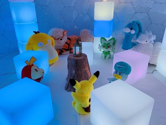 「こおりのひみつきち」をテーマに、スノーチュービングなどの雪遊びをお楽しみいただいた後に少し暖まってポケモンたちと一緒にちょっと一息つく、憩いの場としてご利用いただけます。