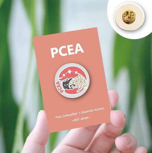 PCEAプロジェクトでは、オリジナルの「PCEA Badge(ピンバッジ)」を作りました。