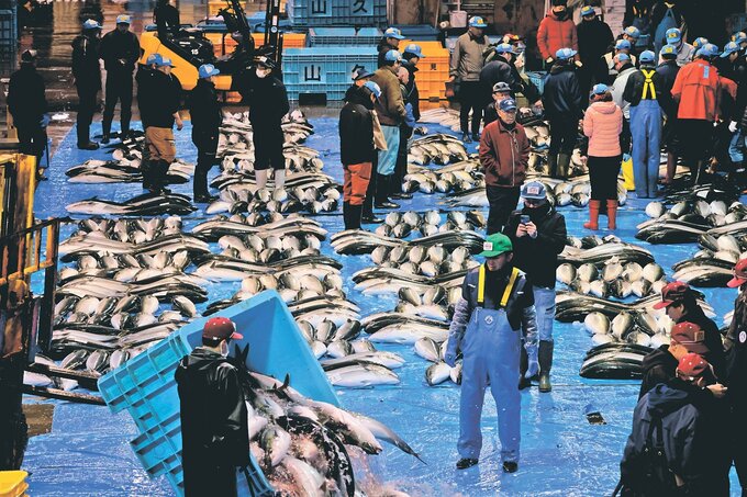 ひみ寒ぶり、過去最速3万本超え(12月13日) 2024年12月14日 05:00 社会・話題 競り場に並んだひみ寒ぶり=13日朝、氷見魚市場 富山県の氷見漁港に13日、「ひみ寒ぶり」が2020本水揚げされ、今季の累計は3万1千本となった。3万本を超えるのは2季連続で、達成時期は過去最も早い。 今季は11月20日に漁開始が宣言されてから豊漁が続く。今月5日の2万本突破に続き、2013年度の達成時期を上回った。 競り場には9~15キロを中心に並び、仲買人らの威勢のいい声が響いた。 この機能は会員限定です。 お気に入りの記事を保存し、マイページで読むことができます。 ログイン 会員登録はこちら