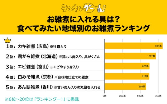 株式会社CMサイト(本社:大阪府大阪市、代表取締役社長:柴原 誠治)が企画編集する、「ちょっと気になる」を調べたランキングサイト『ランキングー!(https://rankingoo.net/)』は、『お雑煮に入れる具は?食べてみたい地域別のお雑煮ランキング』の結果を、投票者のコメント付きで紹介する記事として公開しました。
