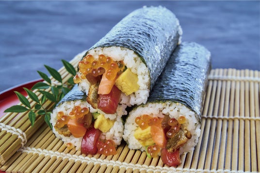 漬けまぐろ、うなぎ、酢〆サーモン、いくら醤油漬け、甘えび、厚焼き玉子、きゅうり、大葉、かんぴょう